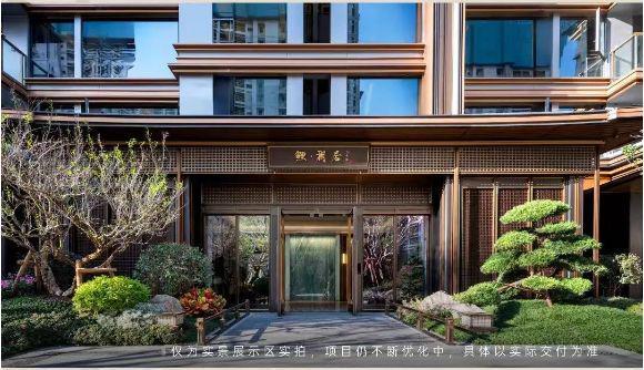首层门楼以殿府规制的“高门大屋为底,两侧多样树种层叠分布,太湖石、枯山水、华纹地砖,以及门口约2米高的罗汉松相映生辉,演绎千年宋韵雅集之礼。