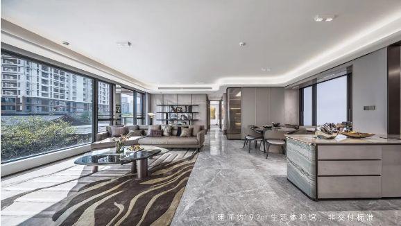 约50m²的社交一体化通厅,约7米宽南向大(部分空间需业主自拓)开间,配备全景酒店式落地窗设计,不仅引[(总地安距离地面约200mm,具体以实际交付为准)入自然光,也扩展了户外的景观视野。更大的空间场域,迭新多个场景,是家庭聚会的欢乐地,朋友小聚的优雅所在,也是孩子们的嬉戏园地。