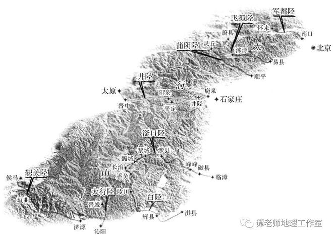 2.(2019·广州市调研)在方言中,横切山脉使山脉中断的河谷或山谷称为“陉”,这种谷底因为走向与山脉近于垂直相交,也称为“横谷”。“陉”,历史上常被利用作为迁徙、贸易、征战的道路系统。下图为太行八陉示意图。据此完成(1)~(2)题。
