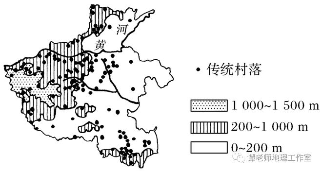 解析第(1)题,根据图例可以看出,不同海拔地区传统村落空间分布的差异较大,因此造成河南传统村落空间分布差异的主要因素是地形。第(2)题,河南省中西部地区海拔较高,交通不方便,与外界联系较少,传统村落保留数量多。