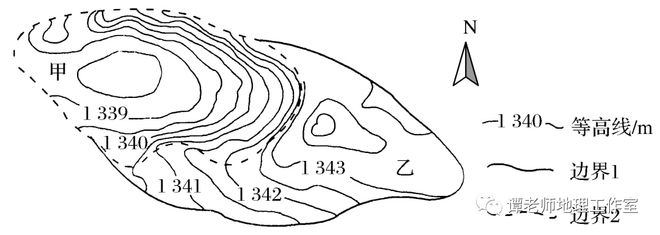 解析第(1)题,结合图中等高线可知甲区域地势相对较低,应是风力侵蚀作用形成的风蚀坑;乙区域地势较高,应是风力堆积作用形成的沙丘。第(2)题,根据图中等高线的分布可知,风蚀坑分布于沙丘西侧,迎风坡一侧风力侵蚀能力强;背风坡一侧侵蚀弱,应以沉积为主,故该地盛行偏西风。