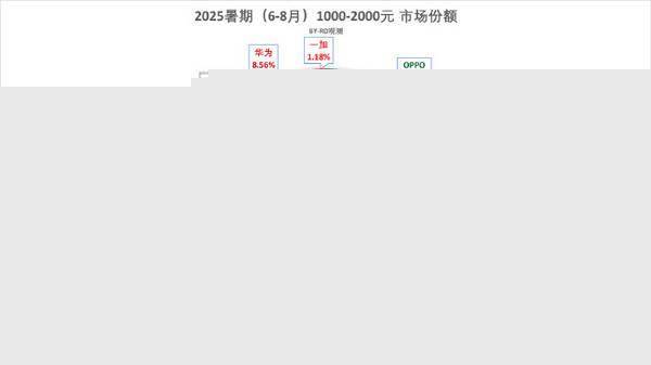 【CNMO科技消息】近日,有数码博主曝光了国内1000元-2000元市场份额数据。2025年6月到8月,vivo(含iQOO)以领先亚军不到两个百分点拿下第一,而荣耀与OPPO(含一加)则分别以22.87%、18.27%占据第二以及第三。