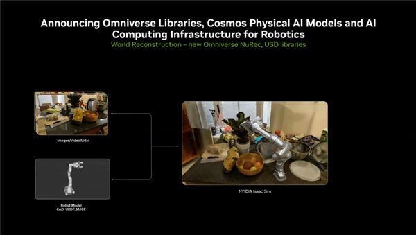 其中模拟提供了构建物理AI所必需 的数字孪生环境,为了让机器更好地理解世界,NVIDIA在Omniverse中引入了Cosmos模型家族,这是一套专为物理AI设计的世界基础模型。它将模拟过程分解为三个关键步骤,并提供了相应的工具: